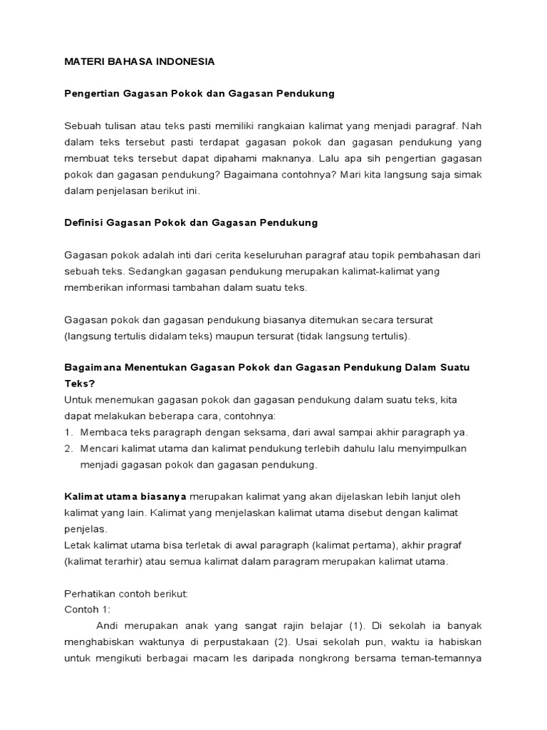 Cara Menentukan Gagasan Pokok Dan Gagasan Pendukung Kumparan Com from blue.kumparan.com We did not find results for: Maybe you would like to learn more about one of these? Gagasan pendukung adalah uraian atau informasi tambahan pada suatu teks yang terletak pada kalimat. Check spelling or type a new query.